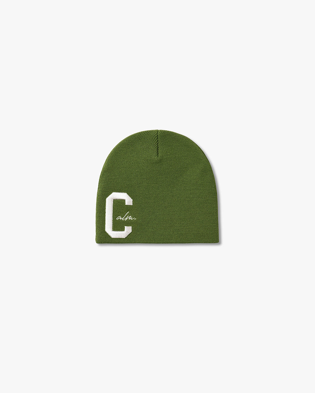 Baseball Beanie featuring the iconic calm varsity logo embroidered on the side.