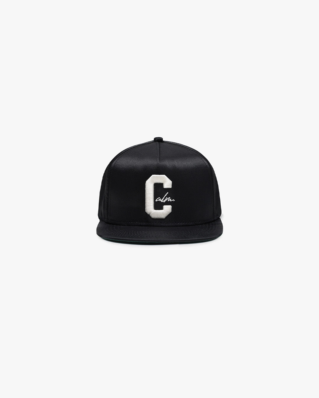 Featuring the iconic calm varsity logo embroidered on the front panel.