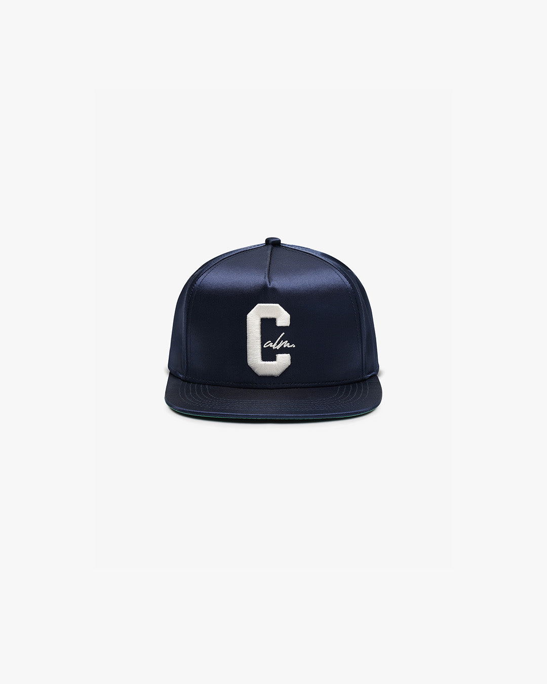 Featuring the iconic calm varsity logo embroidered on the front panel.