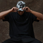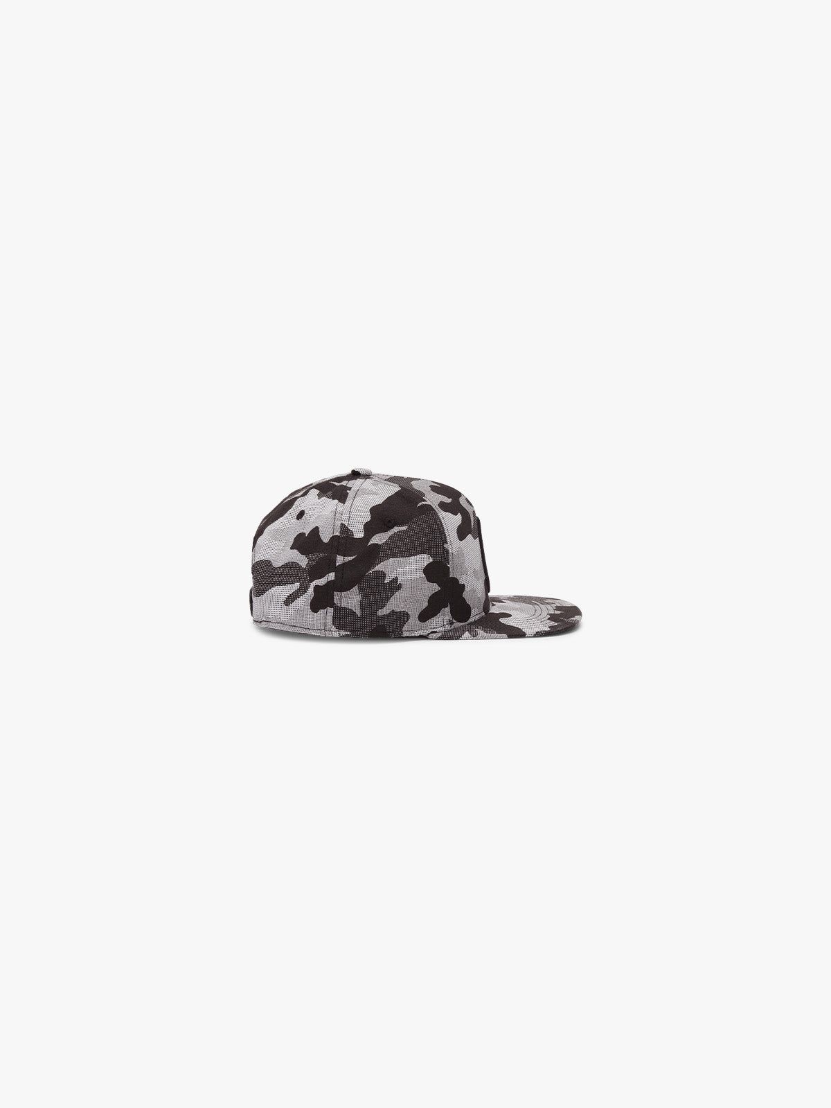 Snow camo in a boxy silhouette with dart on the front. Made in ripstop.