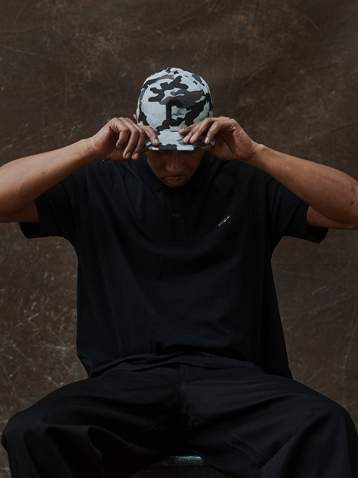 Featuring the iconic calm varsity logo embroidered on the front panel.