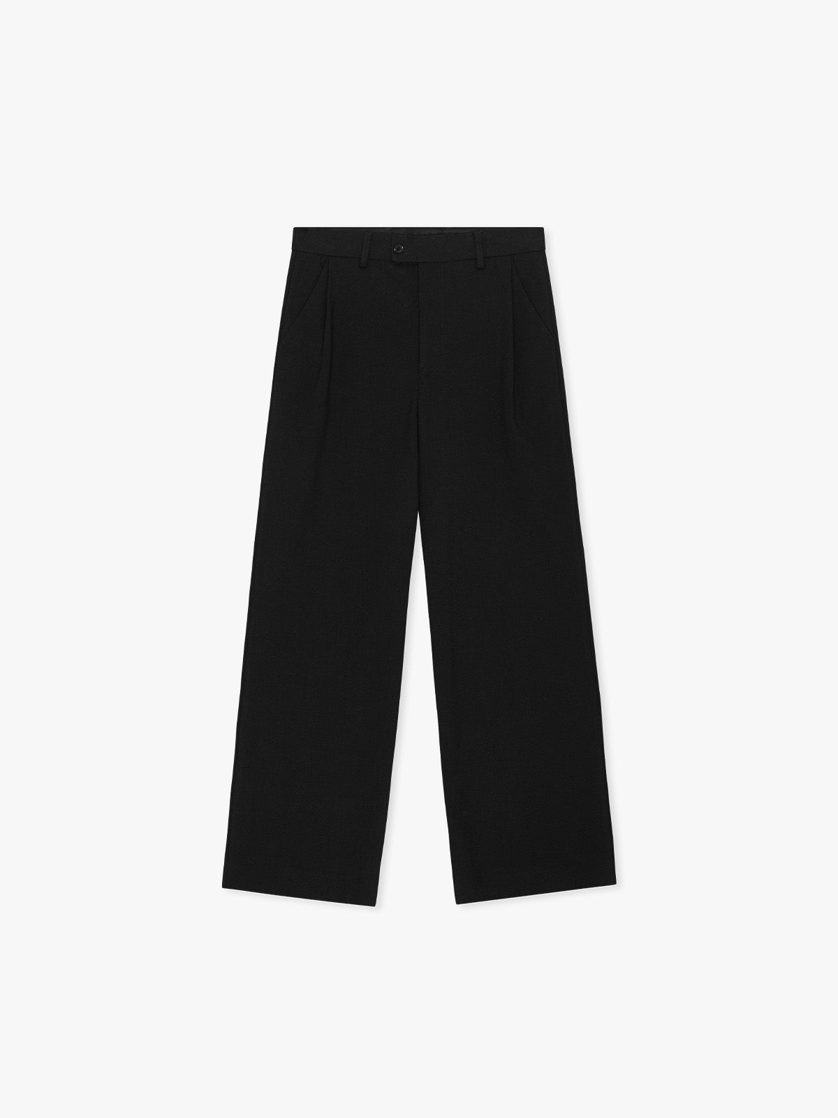 The Downtown Trouser is a wide leg pant with a straight clean shape inspired by classic New York tailoring. The front has pleated detailing, side pockets and a button closure. The back features welt pockets with button fastening. The fit sits naturally on the waist and falls with a relaxed drape through the leg.
