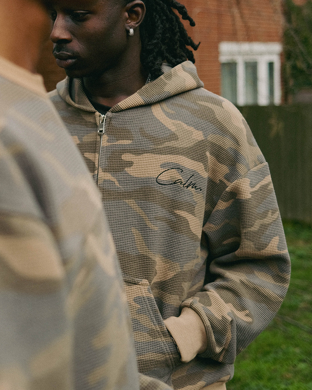 DESSERT CAMO WAFFLE ZIP HOODIE
