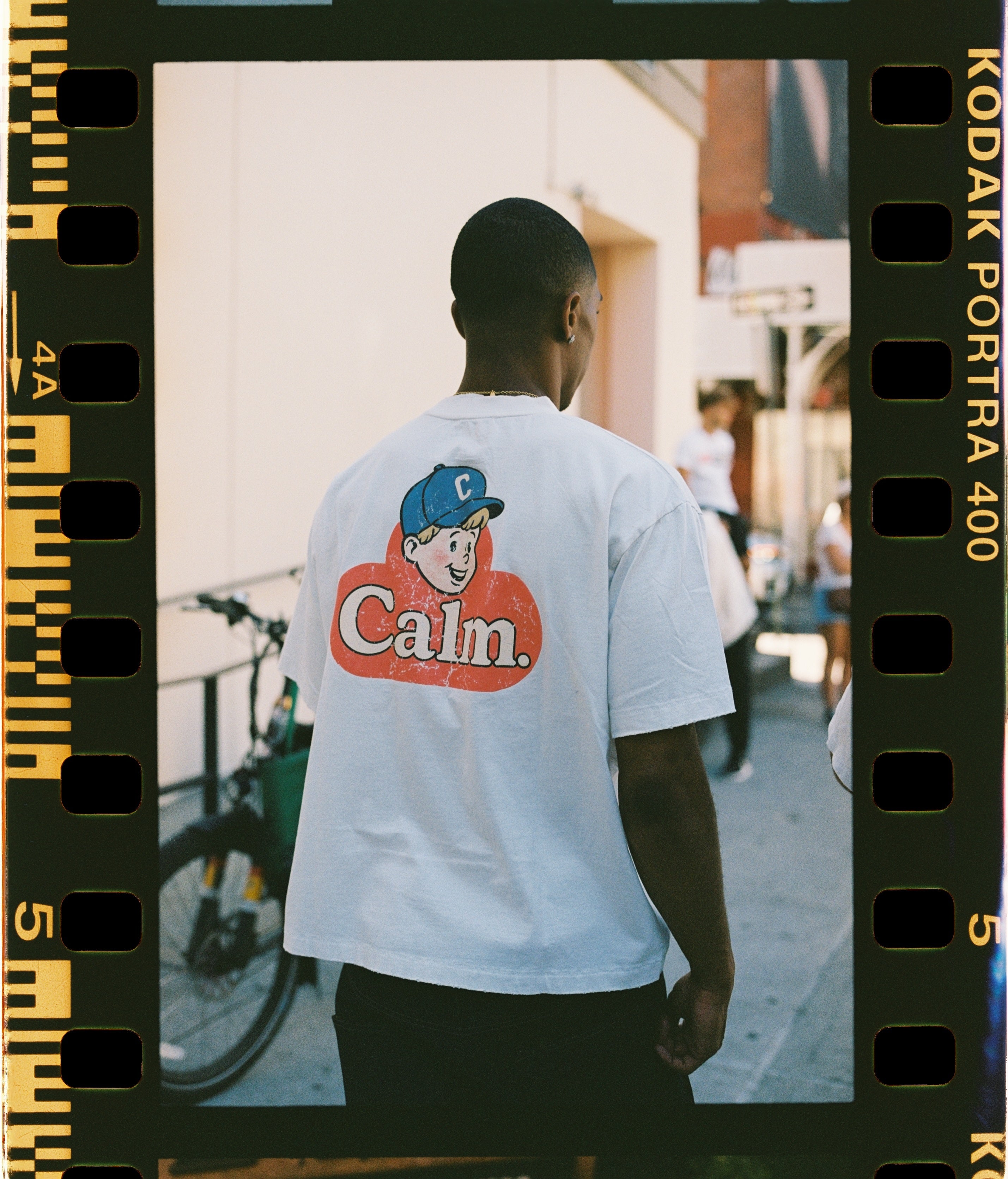 The Vintage Tee is crafted from heavyweight cotton and stone-washed for an authentic, worn-in feel. Designed in a boxy, oversized fit with dropped shoulders and a straight hem, it embodies the relaxed spirit of vintage streetwear. The T-shirt features a small Calm Boy logo on the front and a large statement version on the back, both inspired by classic American iconography. Each piece is individually hand-distressed, making every tee unique and true to a vintage look.
