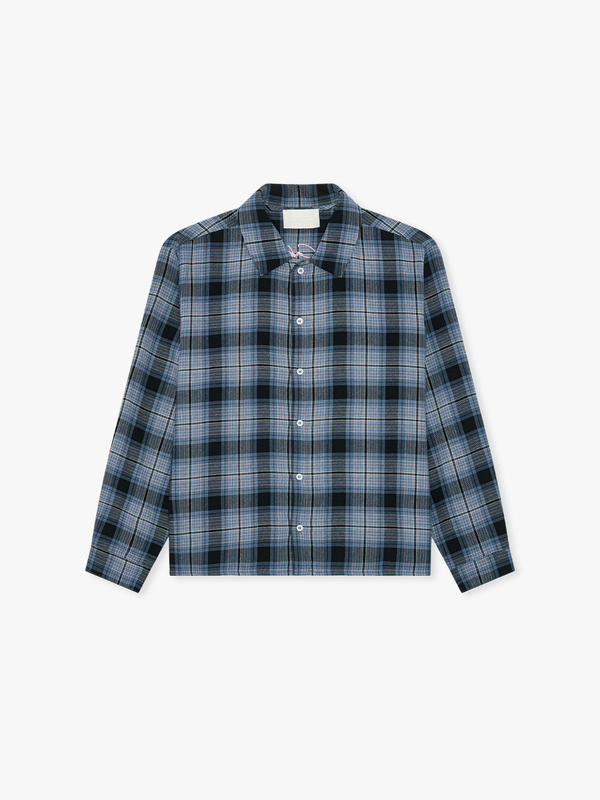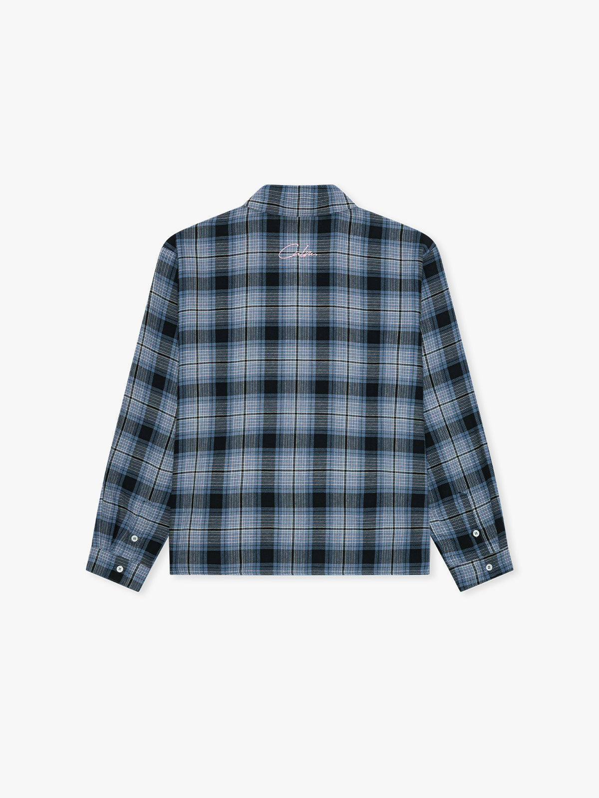 Introducing our Flannel Shirt in Blue Black, crafted from soft 100% cotton flannel with a brushed surface for a lived-in feel. Designed in a regular fit with a straight hem and clean silhouette. Finished with a subtle pink Calm logo embroidered in cursive at the back neck.